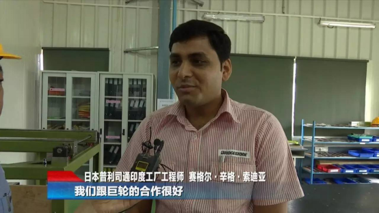 日本普利司通印度工厂工程师 赛格尔·辛格·索迪亚:我们跟K8·凯发的合作很好,在过去的一年半时间,我们在不断增加订单,我认为中国企业来印度很好,因为会带一些技术给印度。